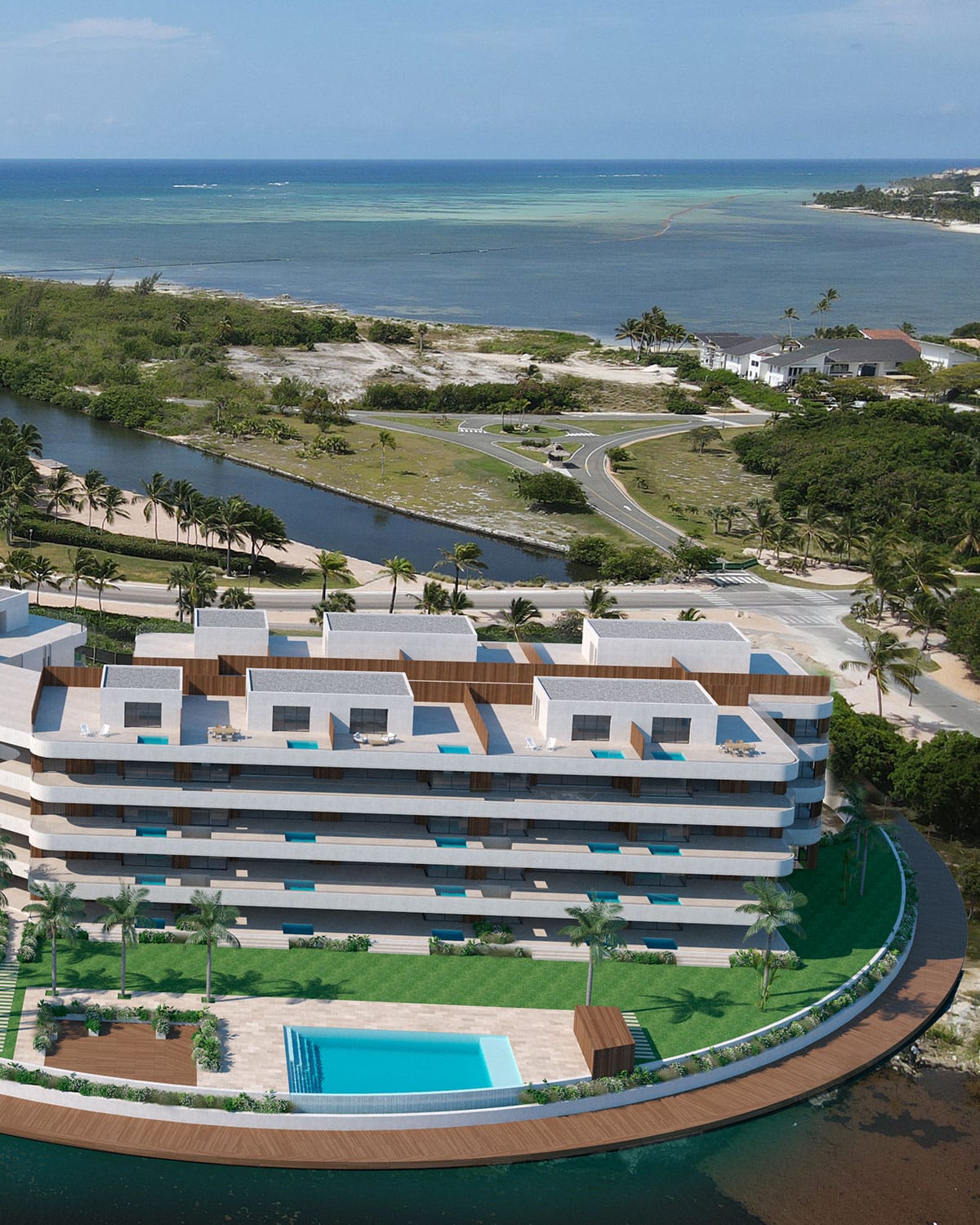 Se desarrolló de forma integral, abarcando todas las fases del diseño: master plan urbano, paisajismo, arquitectura, interiorismo y FF&E, garantizando una solución coherente, funcional y de alta calidad para un desarrollo residencial Premium en el Caribe.