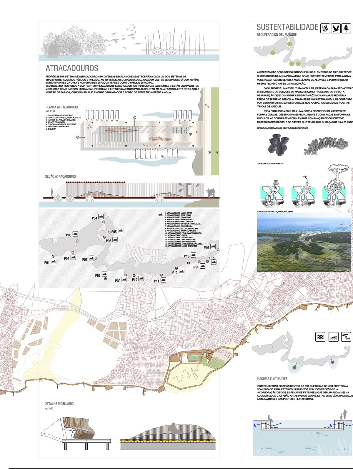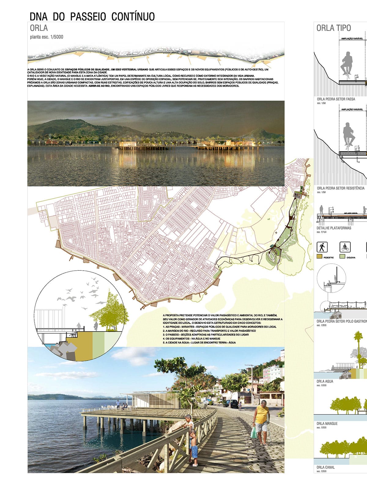 La propuesta trata del diseño del paisajismo de 15 kms de paseo costero que une 9 nuevos equipamientos como escuelas, centros deportivos y culturales integrando a 20 barrios de la zona y beneficiando a 72.000 habitantes.