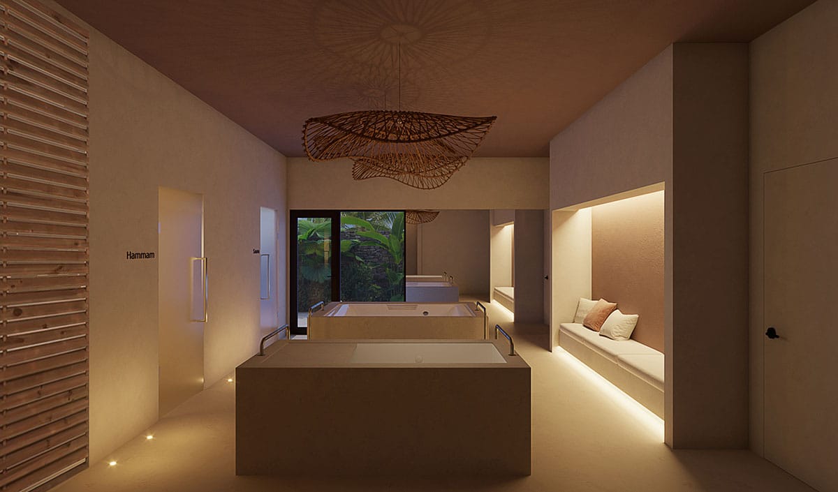 El proyecto se concibe como un espacio de bienestar de carácter introspectivo, donde la arquitectura interior prioriza la continuidad espacial, la iluminación controlada y la materialidad cálida.